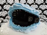 かぎ編みの薔薇モチーフを二枚重ね合わせた、両手に乗るサイズのポーチです。