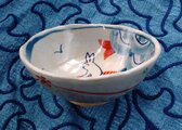 荒波をものともせずノンキそうなうさぎがタイに乗っている・・おめでたいご飯茶碗です。これでご飯を食べると、きっと良いことがあるはず!?
