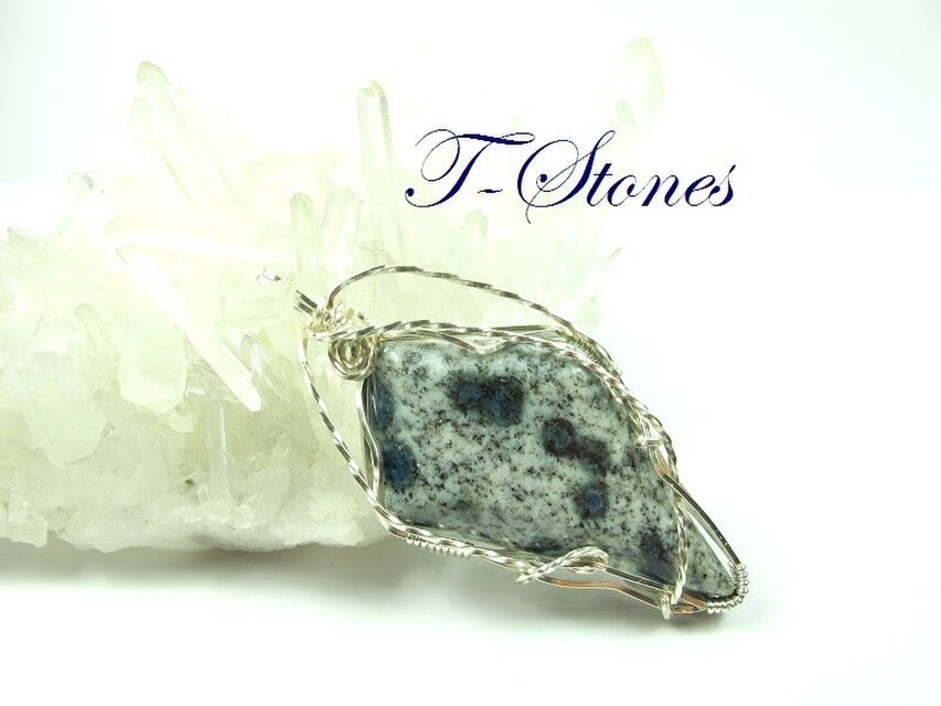 パキスタン、インド、中国の国境のカロコルム山脈から産出されました。登頂困難で、採取するのが難しい為、希少価値の高い石だと言われています。正式名称は、アズライト・イン・グラナイト。ベースの白い部分がグラナイト(花崗岩)で、青いドットはアズライトで形成されています。