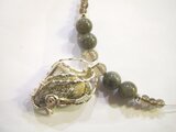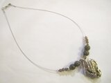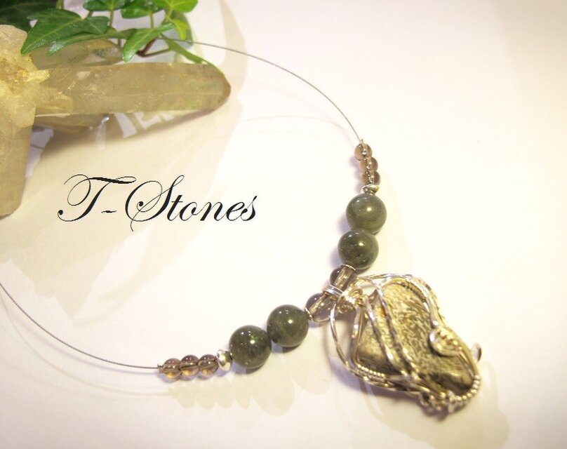 パーキュライトのタンブルをシルバーのワイヤーで巻いて、ネックレスにしました。