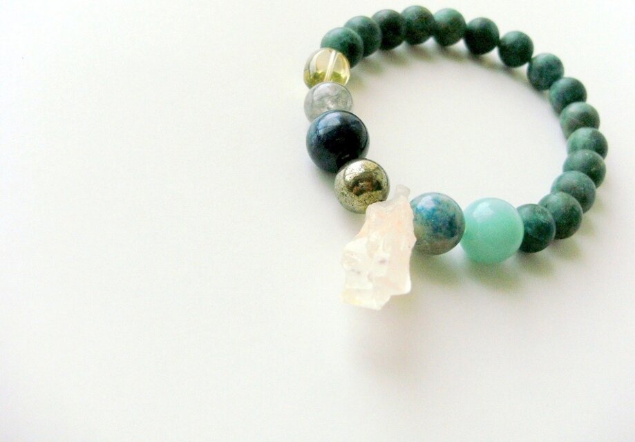 クラウディクォーツ、そしてフロストアパタイトを合わせたブレスレットです。