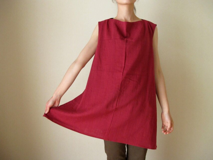 ダブルガーゼ(綿100%)のノースリーブシャツ(ワインレッド)