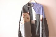 リネン、コットンリネン、端切れをパッチして他にはない、個性のある柄合わせでお作りしました。