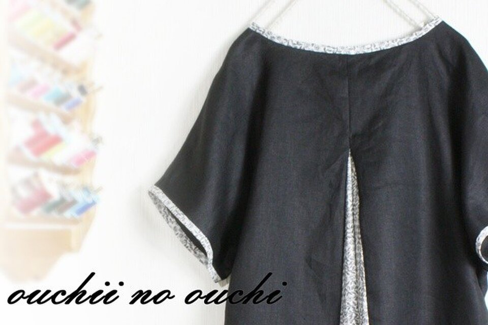 しっとりリネンブラックとリバティタナローンSleeping Roseグレーでドルマンプルオーバーブラウスをおつくりしました。
