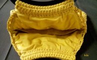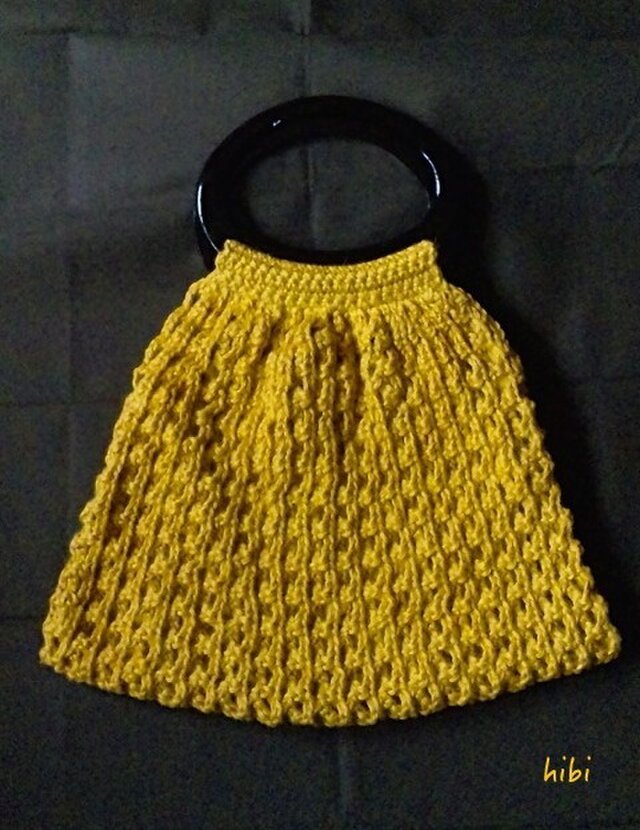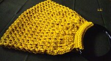 ・ネット編みで長方形を編み、半分に折って絞った形の