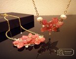 バラのようなローズカラーの紫陽花(あじさい)のネックレスです。
