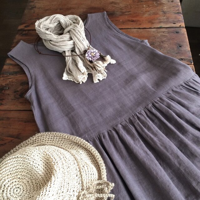リネン100%のモーブグレー色のサラッとした肌触りの良い生地を使いました。