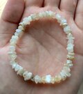 マルチカラー、さざれタイプの10mm以内のシーアゲートを53粒使用しました。ブレスレットの内径は、およそ15cmです。