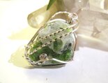 グリーンの輝きの美しいグリーントレモライトをシルバーのワイヤーで巻きました。