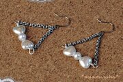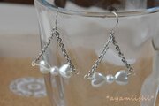 ハートの形のヴィンテージパールを使ってリボンの形にして、チェーンに下げてピアスを作りました。