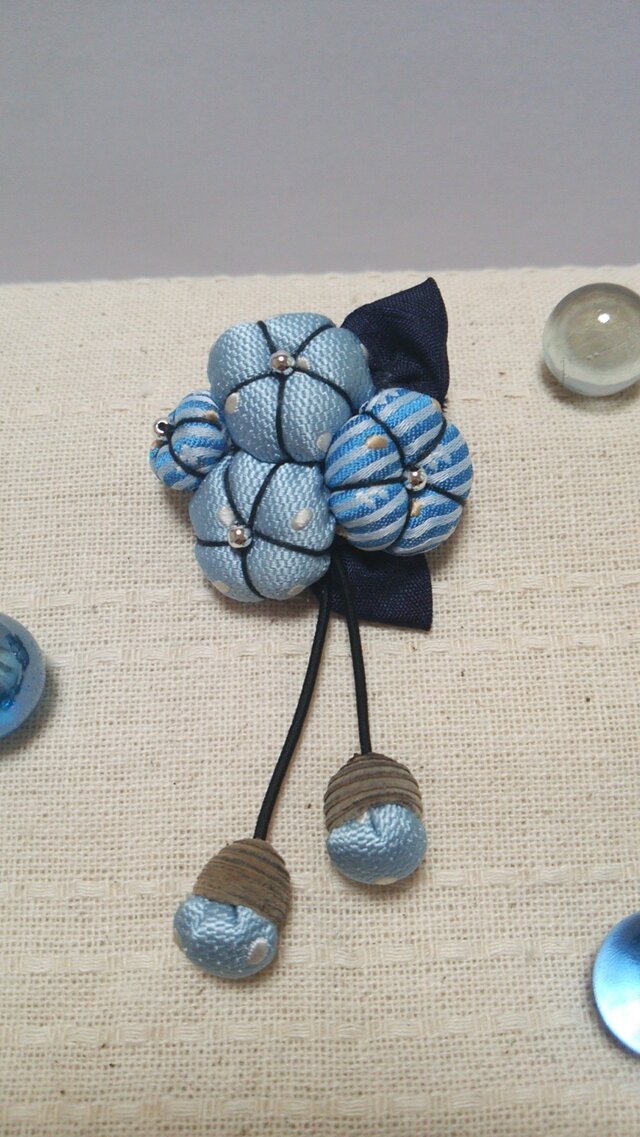 光沢感のある水色のストライプ柄と水玉模様と淡い水色と水玉模様です。