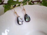 きれいなカットの施された黒蝶貝のピアスです。2枚の貝を張り合わせた上質なものですので、両面同じ輝きが見られます。シンプルな落ち着いたピアスですので、年代問わず永く使っていただけます。