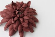 あずきを煮てお汁粉にしたような優しい色合いのダリアコサージュです。上質なシルクの軽やかな着け心地のコサージュです。中心にはグラスビーズをあしらいました。シンプルな洋服のワンポイントや、着物、浴衣のヘアアクセサリーとしてもお使いいただけます。