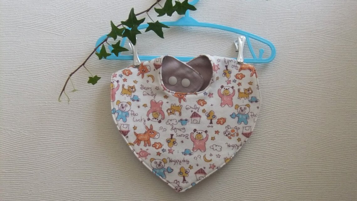 お誕生すぐの赤ちゃんからお使いいただけるサイズとなります。首周りはスナップボタンで調節可能な仕上げです。