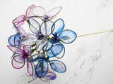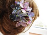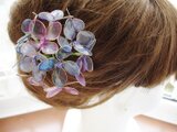 紫のグラデーションでアレンジした紫陽花の簪です。透き通った紫陽花がとても涼し気で,夏の浴衣やドレスの装いにいかがでしょうか?