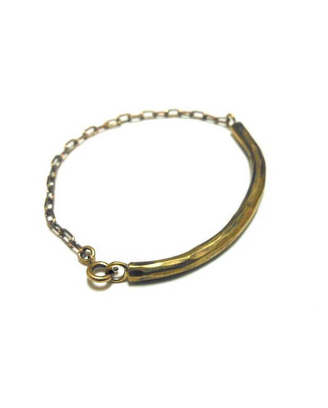 鎚目をつけた棒材とチェーンを組み合わせたシンプルなブレスレット。