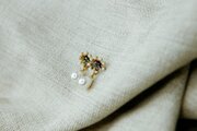 ○素材:真鍮、メッキ真鍮、スワロフスキーラインストーン(グレー)、シェルパール(ホワイト)