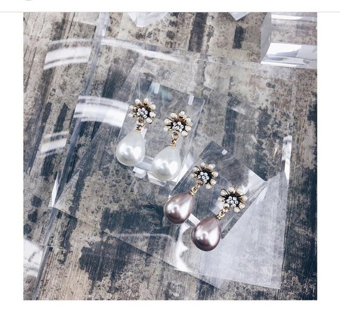 ☆上品なモチーフピアス。可憐なお花の下、雫のようなホワイトパールが華麗にゆらゆら揺れます。お洋服を選ばず付けられるのが最大の魅力です。大人の女性にぴったりでデイリーに活躍します。グレーパールバージョンもございます。