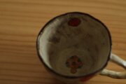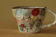 粉引き手びねりカラフルドットときのこととりすのカップ。
