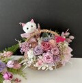 プリザーブドフラワーカーネーションやローズの華やかなバスケット