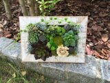 多肉植物によく合う白い木の器に様々な多肉植物を使ってアレンジしました。