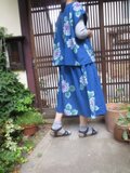 夏色ブルーに紫陽花☆浴衣リメイク☆サラサラ涼しい木綿スカート75㎝丈