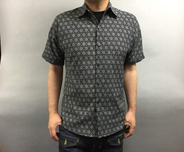 半袖和柄シャツムラ糸クロス(麻の葉模様)
