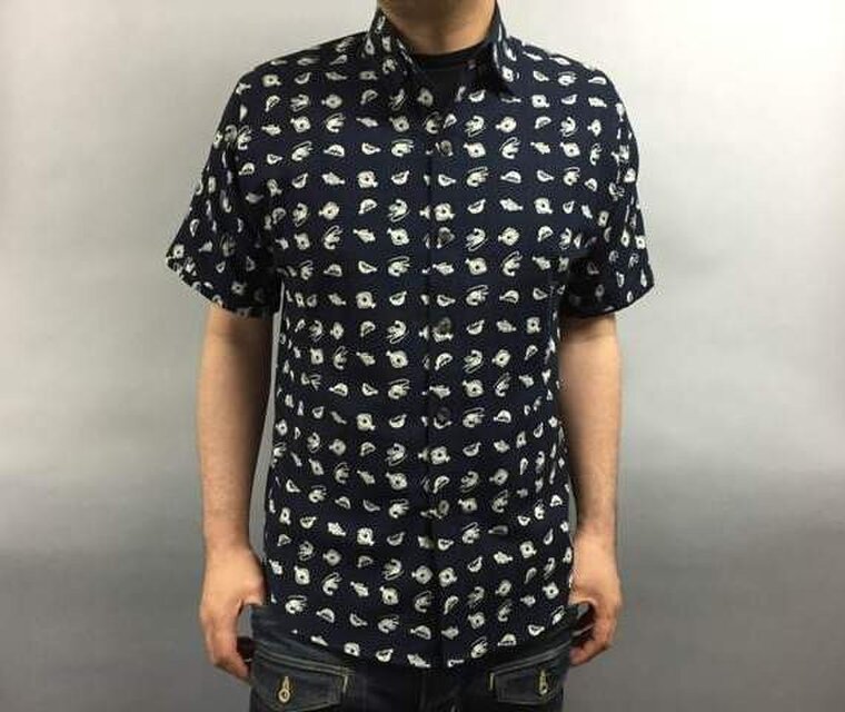 半袖和柄シャツムラ糸クロス(魚模様)