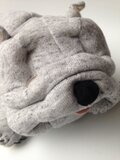 ムチムチした体型とシワを表現したブルドッグのぬいぐるみです。