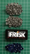 ピッグスエードを花の形に切り取り、たくさん集めてキュートなブローチになりました。こちらは 小さな小さな花びらの一つ一つに花芯をつけたタイプです。