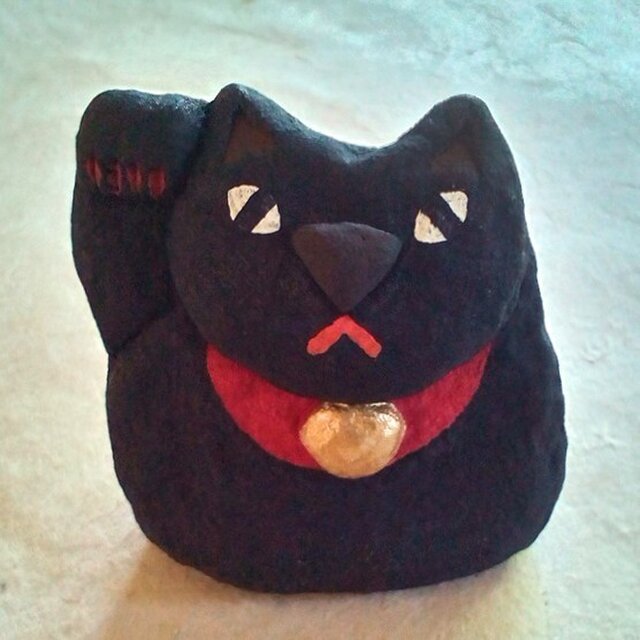 漆喰で造った福を招く招き猫。5.5 × 5.0 × 3.5cm。