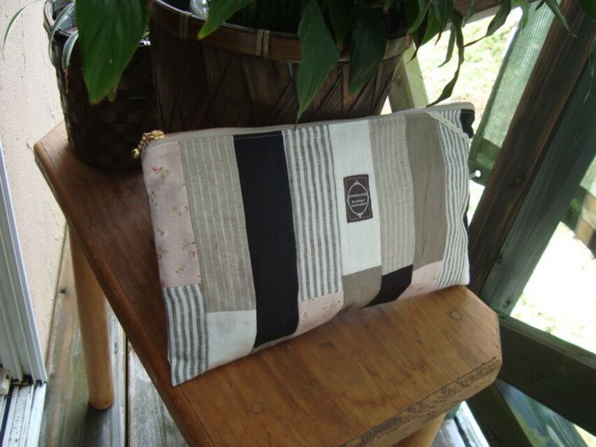 布を合わせたフラットポーチです。現品のみとなります。