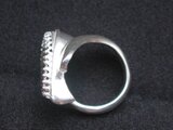 サイズは14.5号、重さは14g、最大幅は22mm、最小幅は6mm、金属部分は純銀製です。