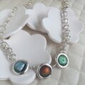 純銀枠に金属蒸着させた不思議な光のダイクログラスをセットしてネックレスを作りました。