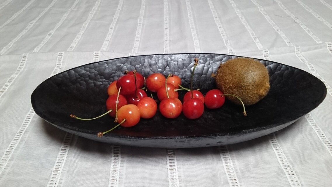 タモを削ったトレイ 存在感があり 木の ぬくもりが とっても素敵! サクラの カッティングボードも 野性味があり キャンプに 行ったとき そのまま テーブルで 切り分けるのに 最高!