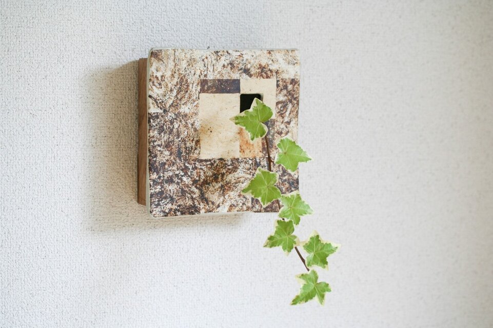裏側に水を入れる箱を置いて、草花を飾ることができます。