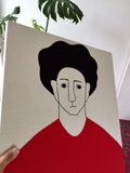 生成りの帆布の生地に直接シュールな刺繍をしました。