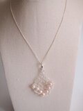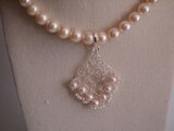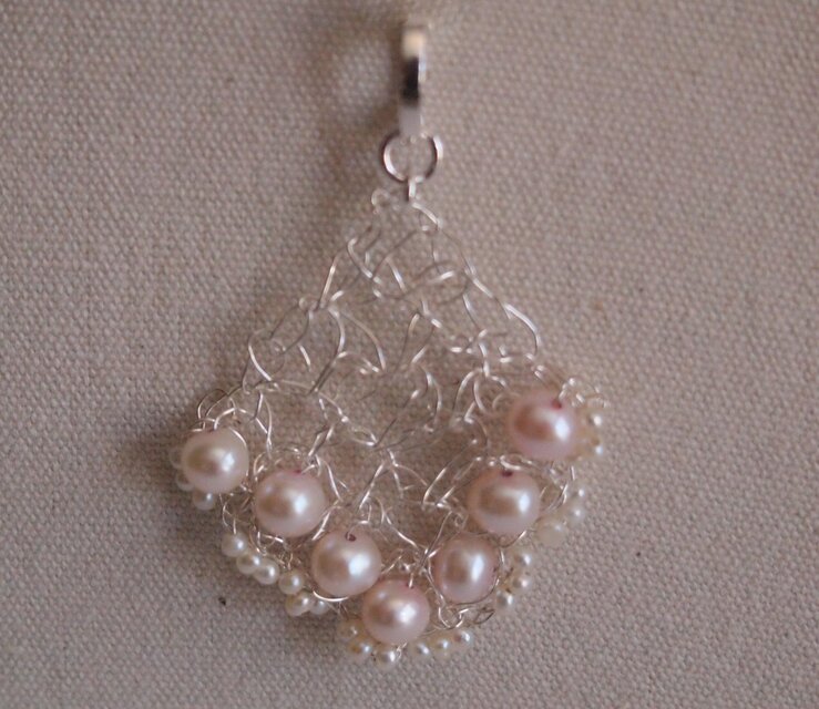 純銀(SV999)の糸をかぎ針でレースのようにパールを編みこんだペンダントトップです。