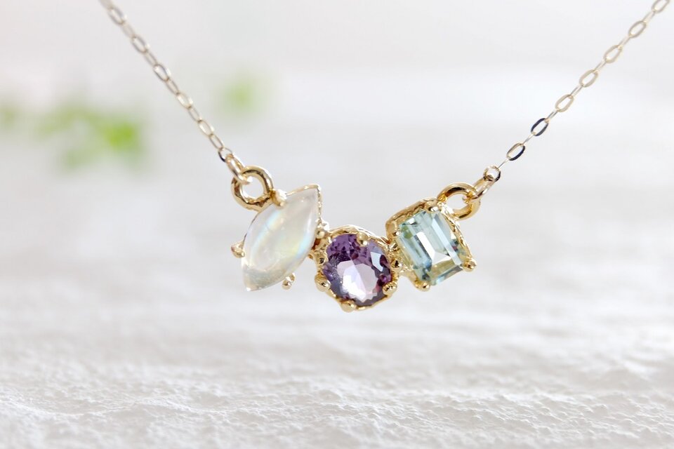 パープルスピネルは、硬度が高いのでキラキラ輝きます。