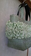 正絹の着物を裂いて、その布を緯糸として織りあげバッグに仕立てました。