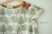 生地は木が並んだ柄なのですが、よく見ると絵の具や筆などが木に成っている、とても夢のあるファブリックです。