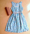 ★★青空に白い小鳥たち! 爽やかなブルーのノースリーブ・ワンピースです★★