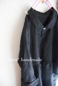 【受注製作】w50ドロップショルダーリネン丸襟ワンピース★黒