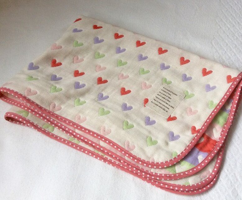 コットン100%のfuwaraさんの6重ガーゼにバイアステープをまわりに使ってでガーゼケットを作りました。