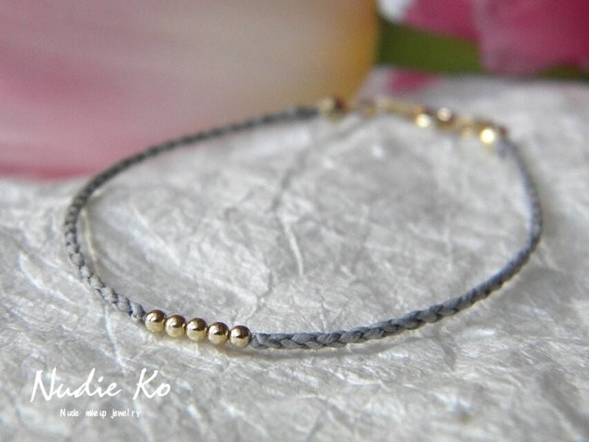 和紙でできた糸を編み上げ、k14gfのラウンドビーズを合わせました。和紙独特の質感があり、さらっとした着け心地の良いブレスレットです。重ね着けもおすすめ。