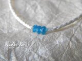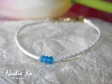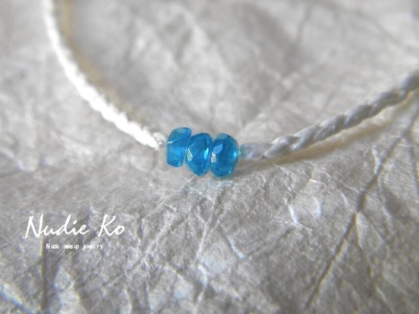 和紙でできた糸を編み上げ、高品質で発色の良いネオンブルーアパタイトのボタンカットを合わせました。和紙独特の質感があり、さらっとした着け心地の良いブレスレットです。重ね着けもおすすめ。