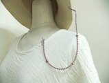 つや消しのピンクのチェコビーズに、3個のピンク淡水パールをアレンジした帽子ストラップです。