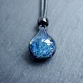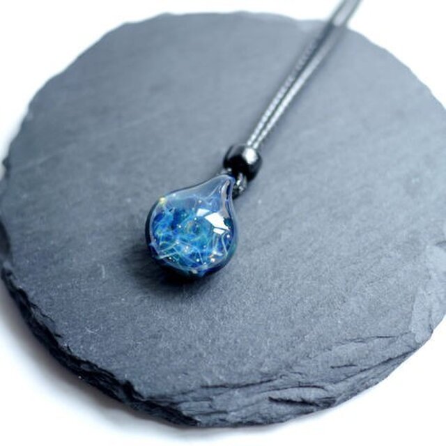 ガラスの中にシルバーの粒を散りばめ、星屑を表現した一点モノのネックレスとなっております。