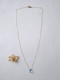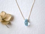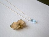 美しい澄んだしっかりした水色の雫トパーズには細かいカットが入っており、きらきらとまさに水の宝石の煌めきです。夏のフォーマルにも。長さは約40.5cmで3cm短く調整するリングがついています。シンプルな一粒タイプをお好みの方に。