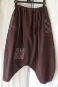 糸味の良い地厚な木綿の年代物の風呂敷が手に入り、ワクワクしながら作りました。上も製作中ですがいつになるかわからず、とりあえずパンツをアップすることにしました。